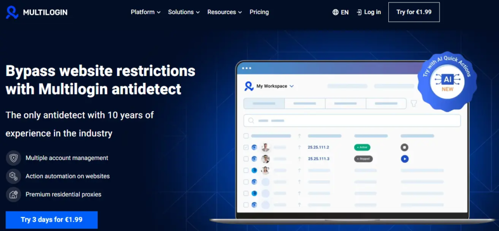 Multilogin is one of the most robust anti-detect solutions in the market, renowned for its advanced browser fingerprinting capabilities. The platform supports team collaboration, API/automation integration, and secure cloud storage, making it a comprehensive choice for enterprise operations.