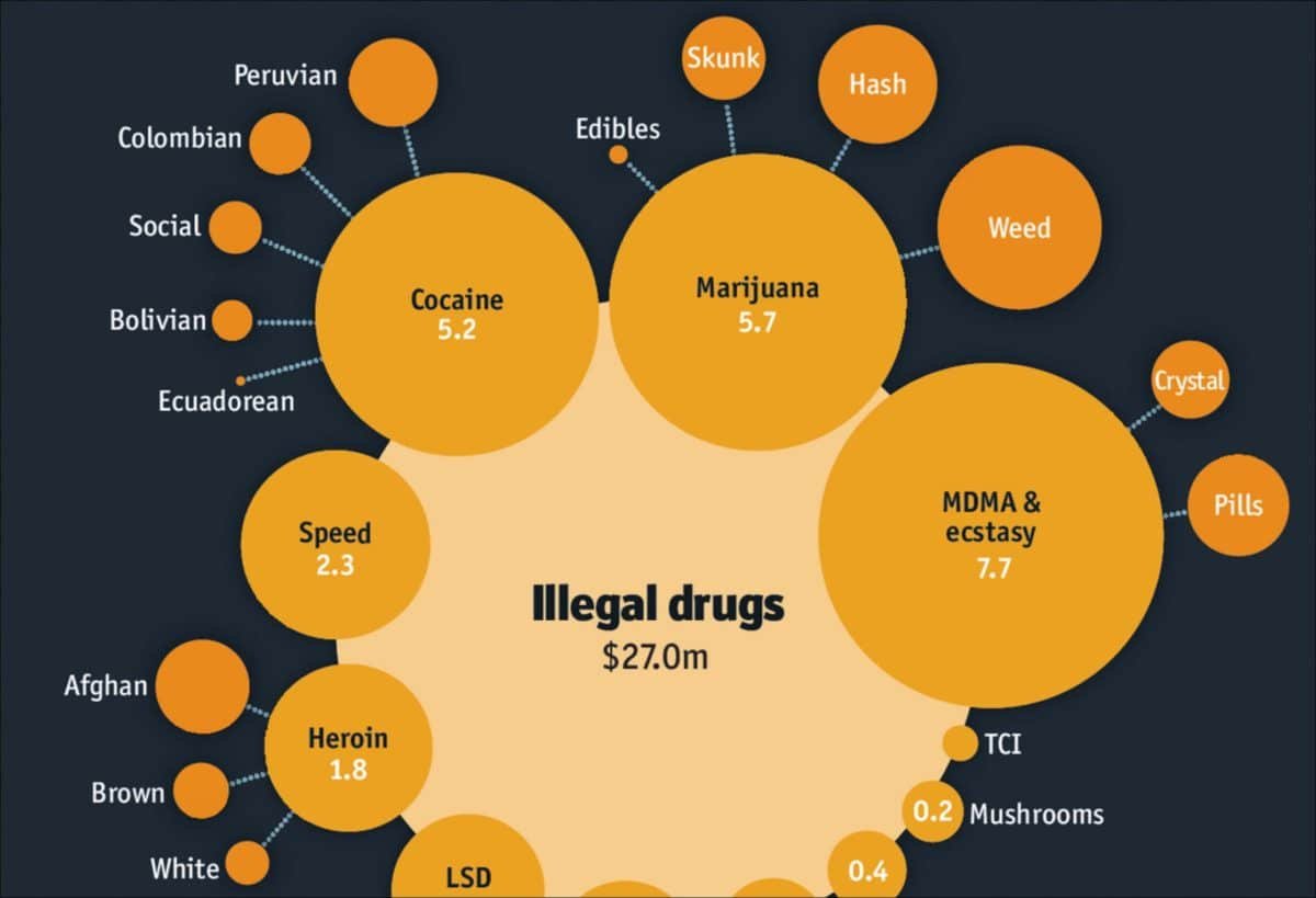 The range of substances available on the dark web is extensive. According to recent surveys and market analyses, the most frequently traded drugs include cannabis, MDMA, cocaine, LSD, and prescription opioids. Cannabis remains the most widely purchased substance, accounting for approximately 35–40% of dark web transactions. This is followed by MDMA, which represents around 20% of total activity, and cocaine at roughly 15%. Prescription medications, including opioids and benzodiazepines, make up about 10–12%, while other psychedelics like LSD and psilocybin account for the remainder.