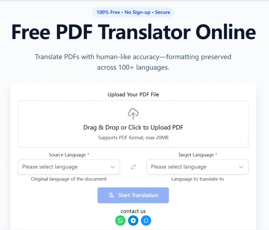 Our free AI PDF translate tool is designed to make translating PDFs effortless. The system enables users to transform their documents into different languages which include more than 100 languages together with English French Spanish and Urdu. The system provides immediate access to translation services which users can access without creating an account.