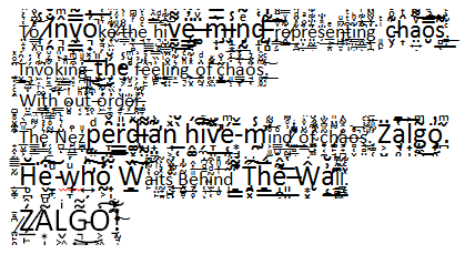 If you are wondering that this is a useless digital font, you are wrong. Surprise surprise! Zalgo text has been a pioneer in starting glitch based internet art. The famous performance artist Laimonas Zakas said he was inspired by Zalgo text to create Glitchr.